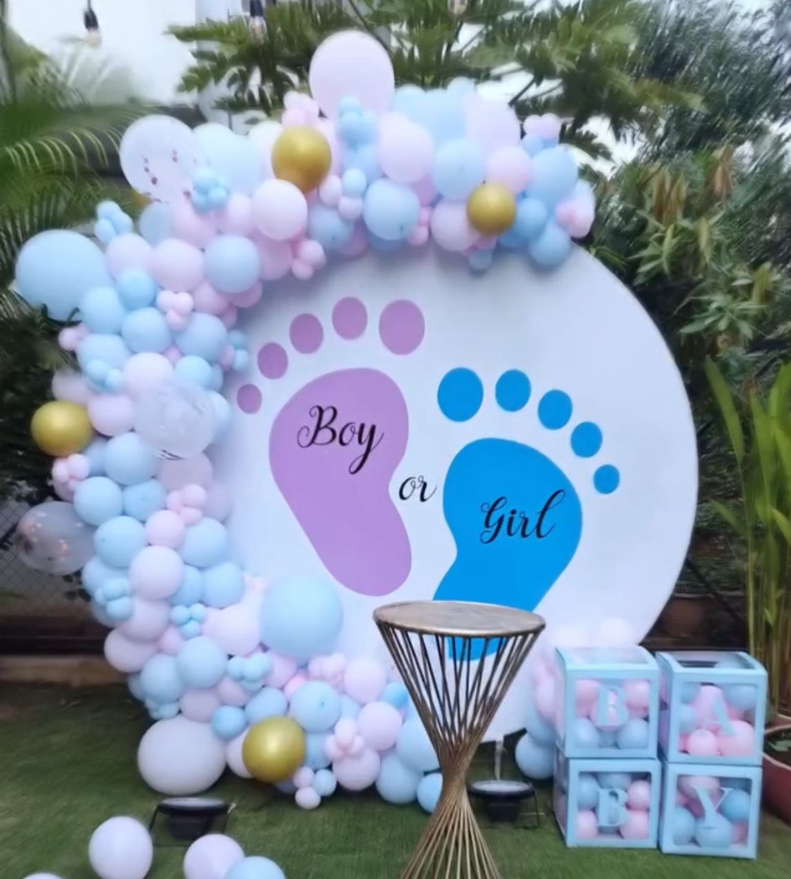 Celebrate the joy of parenthood with our elegant Baby Shower Ring Décor. Designed in soft pink and blue pastel balloons, this setup is the perfect way to welcome the little one with love. The classy backdrop, charming baby boxes, and stylish banner make it a complete décor package that adds warmth and beauty to your celebration. Ideal for photoshoots, home events, or hall gatherings – a setup that’s both elegant and memorable.