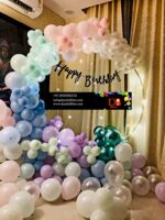 A vibrant multicolor balloon setup that instantly brightens up any celebration. The mix of bold and pastel shades creates a lively and cheerful atmosphere, making it perfect for birthdays, parties, and festive events. The balloons can be styled in arches, rings, or clusters, giving a playful yet elegant touch. Accents like fairy lights, tassels, or floral add-ons can be incorporated to enhance the look. This setup not only uplifts the décor but also serves as a picture-perfect backdrop for capturing joyful memories.